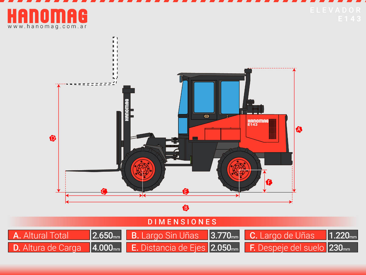 - Velocidad Crucero: Avance: 2 marchas 6-18 Km/h Retroceso: 2 marchas 6-18 Km/h