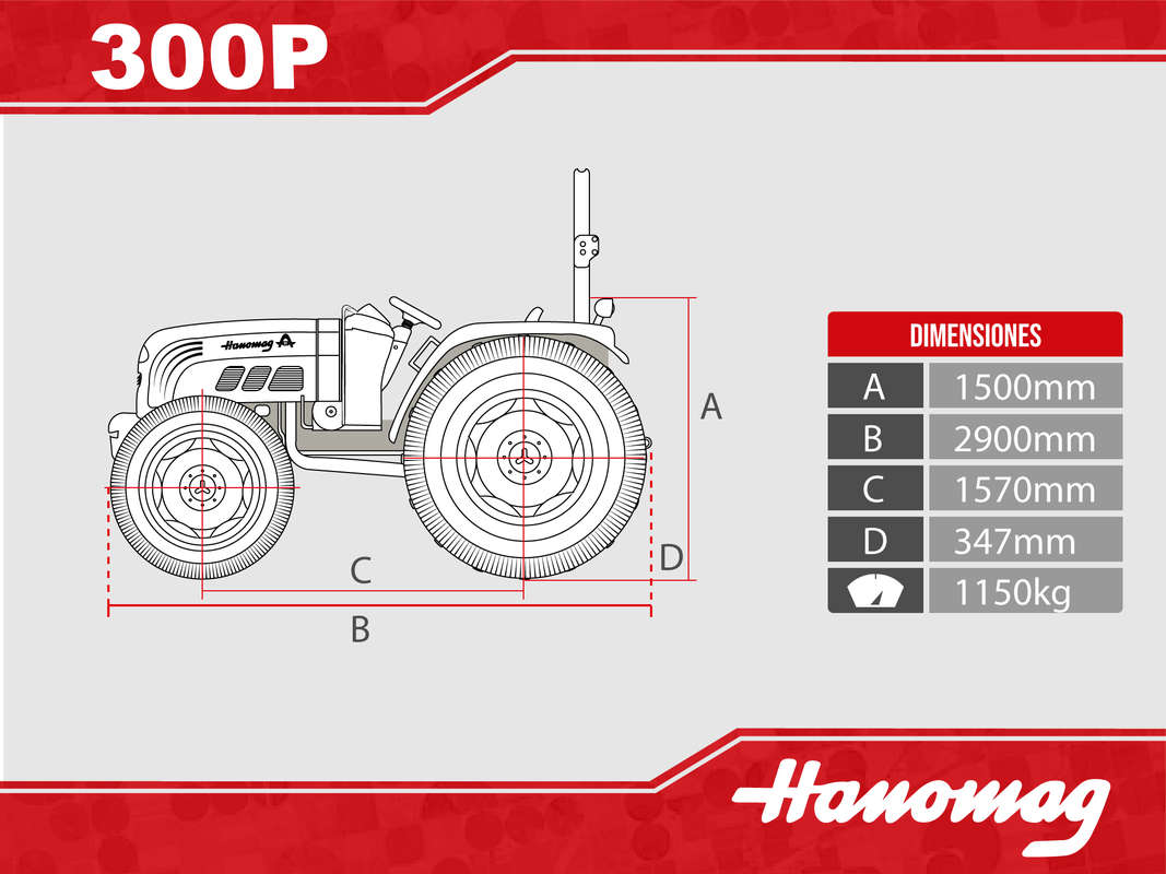 - Trocha Trasera: 1150-1200-1300-1350 mm (ajustable)